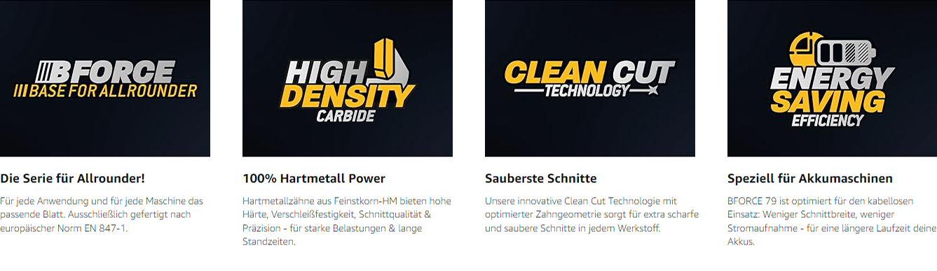 ✔ Sägeblätter für schnelle Längs- und Querschnitte in Holz / für feinste Längs- und Querschnitte in Holz / für feinste Schnittergebnisse in Metall, Kunststoffe, Plexiglas etc.