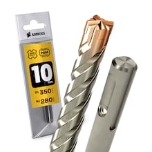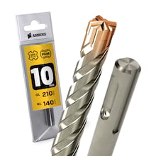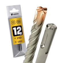 Hartmetall-bestückte SDS-Plus Bohrer für die Verwendung in Stein, armierten Beton, Mauerwerk, Granit, Marmor, keramische Baustoffe, Gasbeton, Sandstein usw. Optimaler Rundlauf, exzellente Verbindung zwischen Hartmetall-Kopf und Bohrerkörper, vierfache Spirale – all das sichert eine lange Einsatzdauer im harten Baustellen-Alltag und macht diesen Bohrer zu Ihrem zuverlässigen Begleiter.