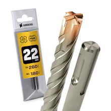 Hartmetall-bestückte SDS-Plus Bohrer für die Verwendung in Stein, armierten Beton, Mauerwerk, Granit, Marmor, keramische Baustoffe, Gasbeton, Sandstein usw. Optimaler Rundlauf, exzellente Verbindung zwischen Hartmetall-Kopf und Bohrerkörper, vierfache Spirale – all das sichert eine lange Einsatzdauer im harten Baustellen-Alltag und macht diesen Bohrer zu Ihrem zuverlässigen Begleiter.