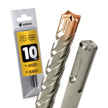 Hartmetall-bestückte SDS-Plus Bohrer für die Verwendung in Stein, armierten Beton, Mauerwerk, Granit, Marmor, keramische Baustoffe, Gasbeton, Sandstein usw. Optimaler Rundlauf, exzellente Verbindung zwischen Hartmetall-Kopf und Bohrerkörper, vierfache Spirale – all das sichert eine lange Einsatzdauer im harten Baustellen-Alltag und macht diesen Bohrer zu Ihrem zuverlässigen Begleiter.