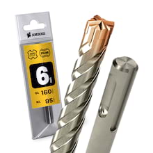Hartmetall-bestückte SDS-Plus Bohrer für die Verwendung in Stein, armierten Beton, Mauerwerk, Granit, Marmor, keramische Baustoffe, Gasbeton, Sandstein usw. Optimaler Rundlauf, exzellente Verbindung zwischen Hartmetall-Kopf und Bohrerkörper, vierfache Spirale – all das sichert eine lange Einsatzdauer im harten Baustellen-Alltag und macht diesen Bohrer zu Ihrem zuverlässigen Begleiter.