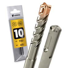 Hartmetall-bestückte SDS-Plus Bohrer für die Verwendung in Stein, armierten Beton, Mauerwerk, Granit, Marmor, keramische Baustoffe, Gasbeton, Sandstein usw. Optimaler Rundlauf, exzellente Verbindung zwischen Hartmetall-Kopf und Bohrerkörper, vierfache Spirale – all das sichert eine lange Einsatzdauer im harten Baustellen-Alltag und macht diesen Bohrer zu Ihrem zuverlässigen Begleiter.