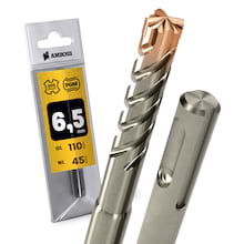 Hartmetall-bestückte SDS-Plus Bohrer für die Verwendung in Stein, armierten Beton, Mauerwerk, Granit, Marmor, keramische Baustoffe, Gasbeton, Sandstein usw. Optimaler Rundlauf, exzellente Verbindung zwischen Hartmetall-Kopf und Bohrerkörper, vierfache Spirale – all das sichert eine lange Einsatzdauer im harten Baustellen-Alltag und macht diesen Bohrer zu Ihrem zuverlässigen Begleiter.