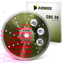 Trennscheibe mit einem sehr hochwertigem Stammblatt, Kühllöchern und lasergeschweißten Turbosegmenten, hohe Standzeit mit schnellem Schnitt Trocken‐ und Nassschnitt