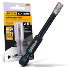 Mit der Amboss Black Edition 6kant bist du perfekt für die kleineren Aufgaben gerüstet. Dank Sechskantschaft perfekt einsetzbar mit Bohrmaschinen und Akkubohrern ist dieser Fliesenbohrer der ideale Begleiter für die Baustelle oder den Handwerker. Die verwendeten hochwertigen Industriediamanten in Kombination mit dem Kühlwachs sorgen für eine lange Standzeit - diese Bohrkrone für Fliesen lässt dich nicht im Stich.