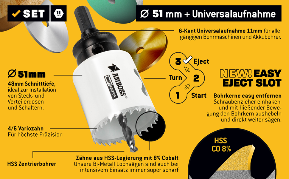 Amboss HSS Bi-Metall M42 (8% Cobalt) Lochsägen - Profi-Lochsäge mit Kobaltlegierung