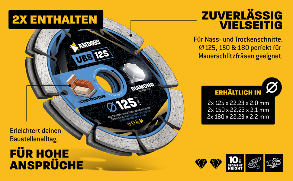 Profi-Diamanttrennscheibe für Winkelschleifer. Optimaler Schnitt durch geschlossene Turbosegmente für schnelles und sauberes Arbeiten. Diese Trennscheibe erzeugt eine optisch sehr schöne Schnittkante und verfügt über eine lange Standzeit. Geeignet für Trocken- und Nassschnitt.