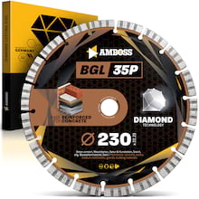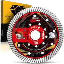 Trennscheibe mit Turborand für schnellen Schnitt und saubere Schnittkanten. Intensiver Einsatz im professionellen Bereich ist die Kerndisziplin dieses Werkzeugs. Geringer Verschleiß auch bei der Bearbeitung schwieriger Materialien. Die Scheibe kann im Trocken- oder Naßschnitt verwendet werden.