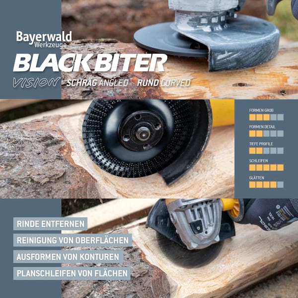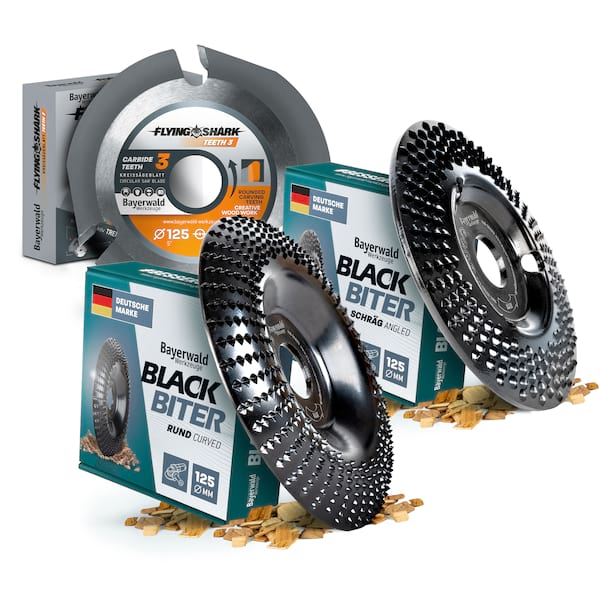 Die Black Biter Raspelscheiben überzeugen durch speziell geformte Zähne für höchste Kontrolle und feine Oberflächenbearbeitung. Egal ob flaches Schleifen oder tiefes Aushöhlen – der Black Biter ist Ihr Partner für kreative Projekte aus Holz und Naturmaterialien.