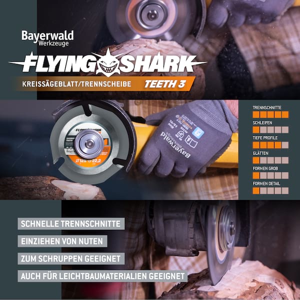Der Flying Shark ist der kraftvolle Spezialist für Trennschnitte. Seine robusten Hartmetallzähne ermöglichen saubere Schnitte ohne gefährlichen Kick-Back. Ob Holzwerkstoffe, Kunststoffe oder Leichtbaumaterialien – der Flying Shark liefert Profi-Ergebnisse bei jeder Anwendung.
