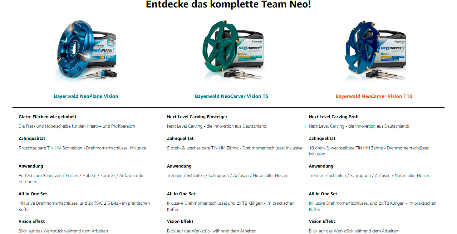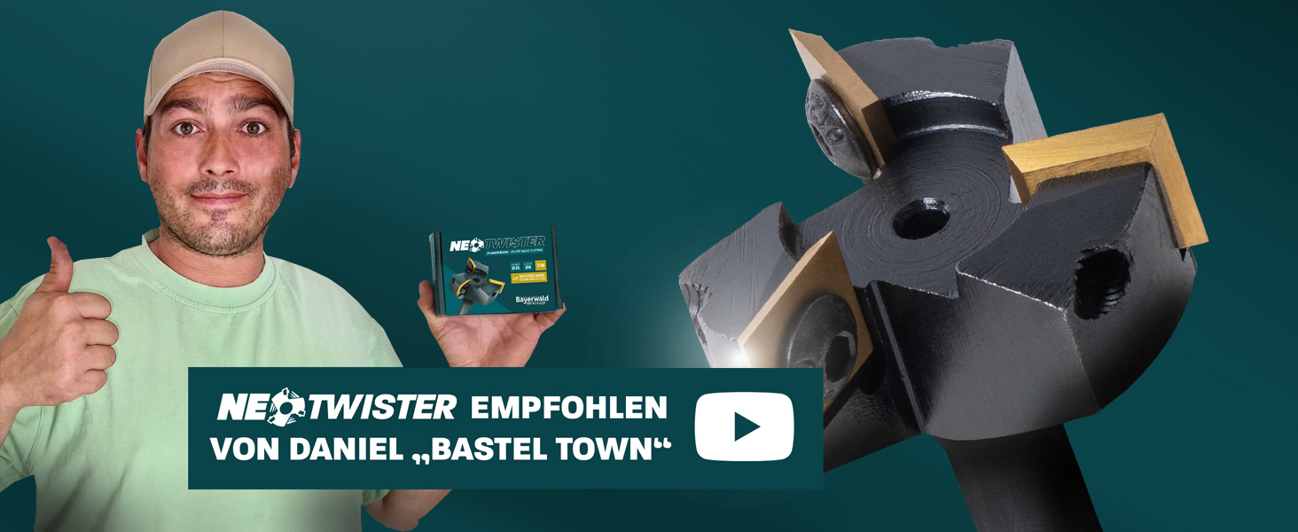 Im Lieferumfang befindet sich neben dem NeoTwister Planfräser ein Sechskant-Schlüssel zum Wechseln der Schneiden auch ein hochwertiger Aufbewahrungsbeutel. Die gesamte Verpackung ist dabei plastikfrei - gut für die Umwelt. Von Profis für Profis - dieser Grundsatz gilt selbstverständlich auch bei diesem Werkzeug aus dem Hause Bayerwald und wird von Anwendern wie dem von Youtube bekannten Daniel des Channels "Bastel Town" bestätigt.