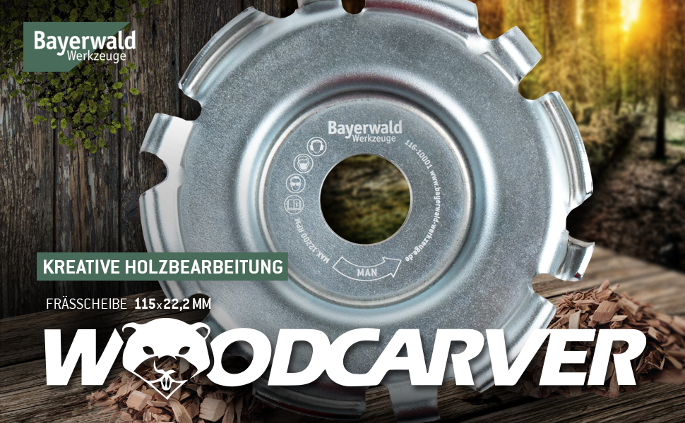 Das ideale Fräswerkzeug für Ihre Werkstatt: Der Bayerwald Woodcarver ist wegen seiner leichten Handhabung ideal als Einstieg in die Holzbearbeitung durch Fräsen geeignet. Mit diesem ist die Herstellung großer Holzskulpturen kein Problem, denn der Fräser zeichnet sich durch eine große Spanabnahme aus. Dank ihrer speziellen Form und der Fertigung aus hochwertigem Stahl ermöglicht sie eine problemlose Formgebung speziell von Weichhölzern - ein Verhaken der Frässcheibe wird vermieden.