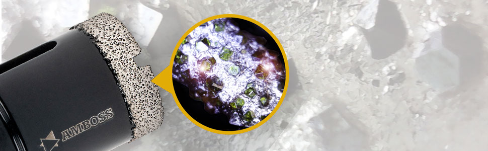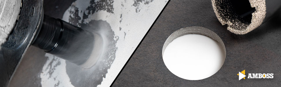 Die Diamant Bohrkronen von Amboss eignen sich speziell für den Einsatz mit dem Winkelschleifer und können für die Bearbeitung schwierigster Materialien wie Feinsteinzeug oder Granit eingesetzt werden. Die Bohrkronen sind für den Trockenschnitt konzipiert, es ist keine Kühlung erforderlich.