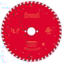 Spezialsägeblätter für optimale Schnittgüte in beidseitig mit Polyester, Thermoplasten oder Duroplasten beschichtete Spanplatten sowie beidseitig mit Furnier oder Kunststoff belegten Möbelplatten bis 30mm Schnitthöhe.