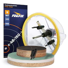 Falke Werkzeuge bietet mit seinen Kreisschneidern das ideale Werkzeug für Trockenbauer. Kreisschneider sind generell die ideale Alternative zur herkömmlichen Lochsäge, da diese das Bohren von Löchern verschiedenster Durchmesser ohne eine große Anzahl von Werkzeugen ermöglichen. Diese verstellbaren Lochsägen verfügen wahlweise über einen Schutzkorb, welcher sauberes Arbeiten ermöglicht und die abschließend nötige Reinigung auf ein Minimum reduziert.