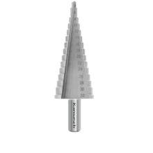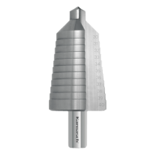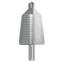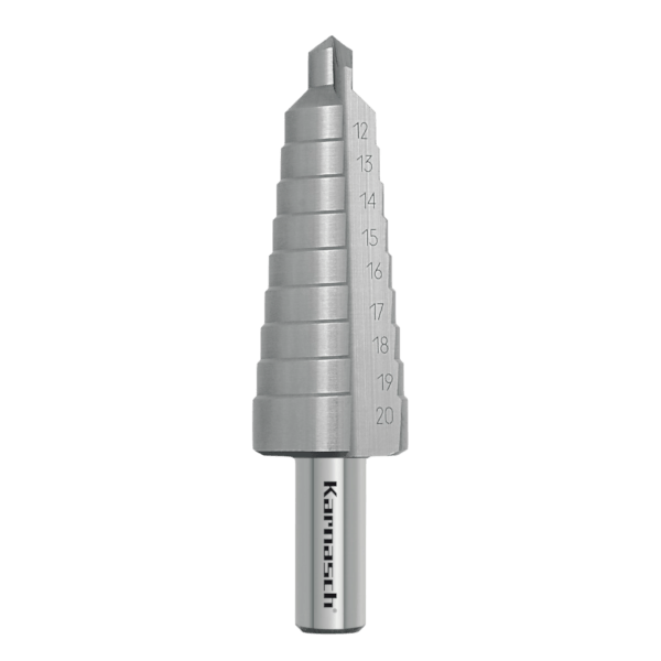 Karnasch Stufenbohrer wurden entwickelt, um einwandfreie kreisrunde und gleichzeitig entgratete Bohrungen in Bleche bis zu 4mm Stärke zu fertigen. Der Übergang von einer Stufe zur nächsten dient zum Anfasen oder Entgraten der Bohrung.